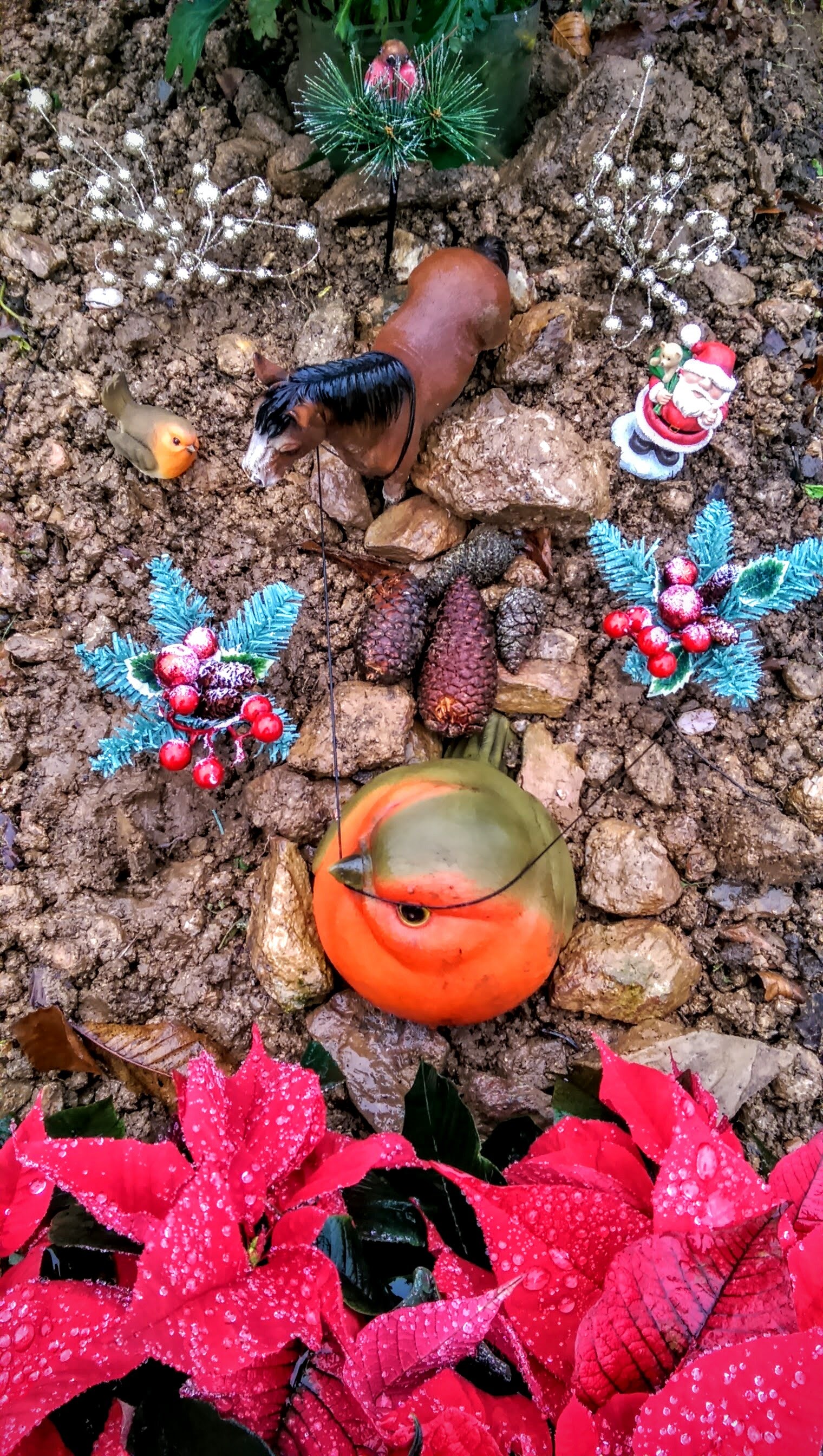 Santa Claus and a red robin too.