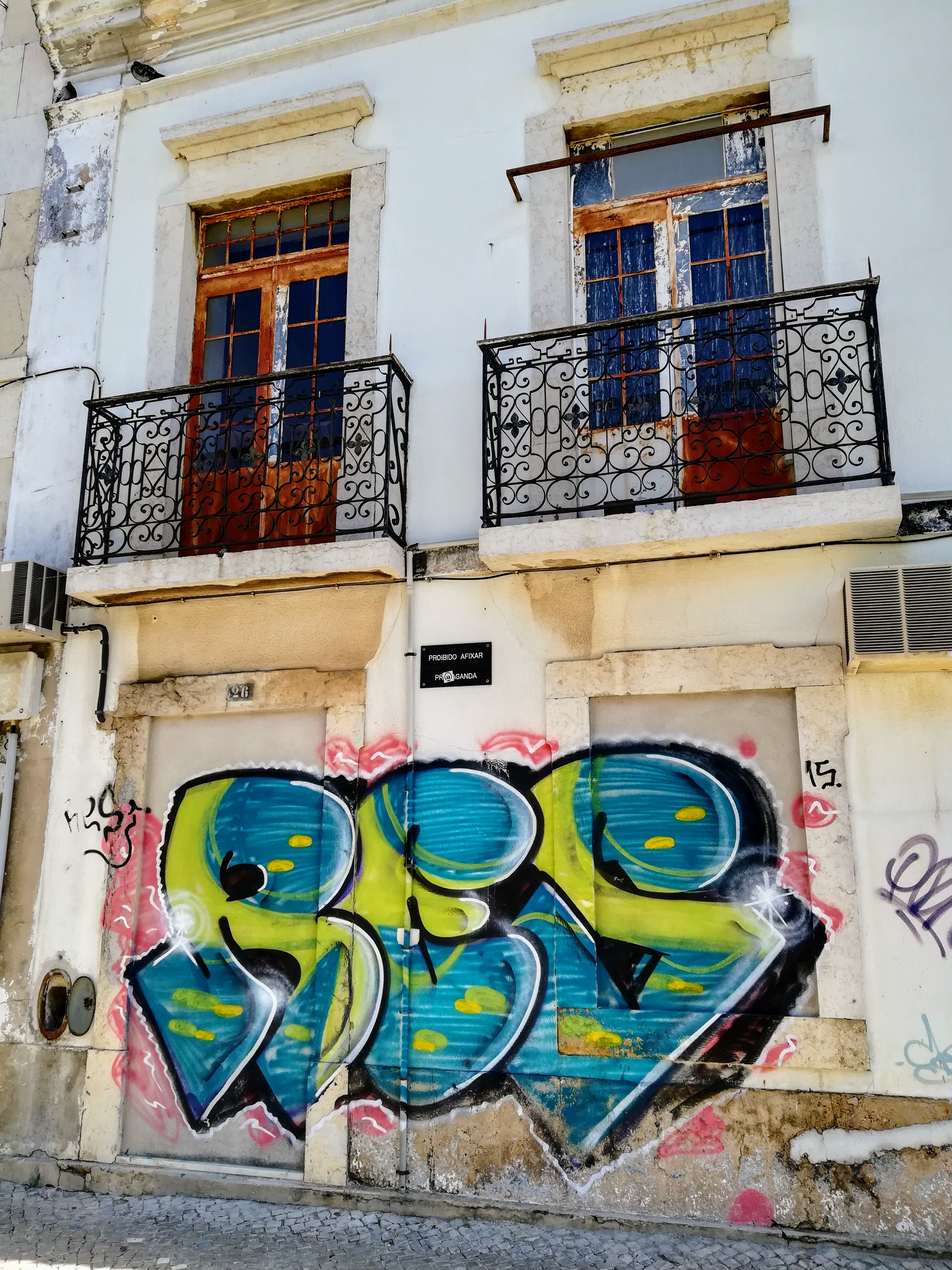 Ironwork balconies and graffiti