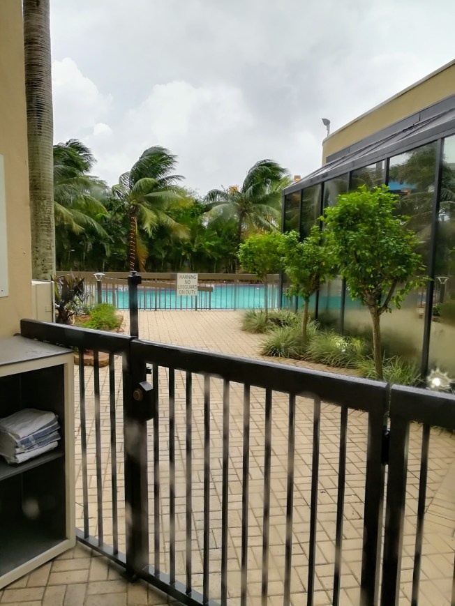 We have had no power all day long, no WiFi, elevators, nor air conditioning. It has been incredibly noisy, with monsoon rains, and super strong winds, with a tornado warning. We were not allowed outside, due to the danger of flying projectiles. Many tree limbs are on the ground, as well as fencing and garbage bins.