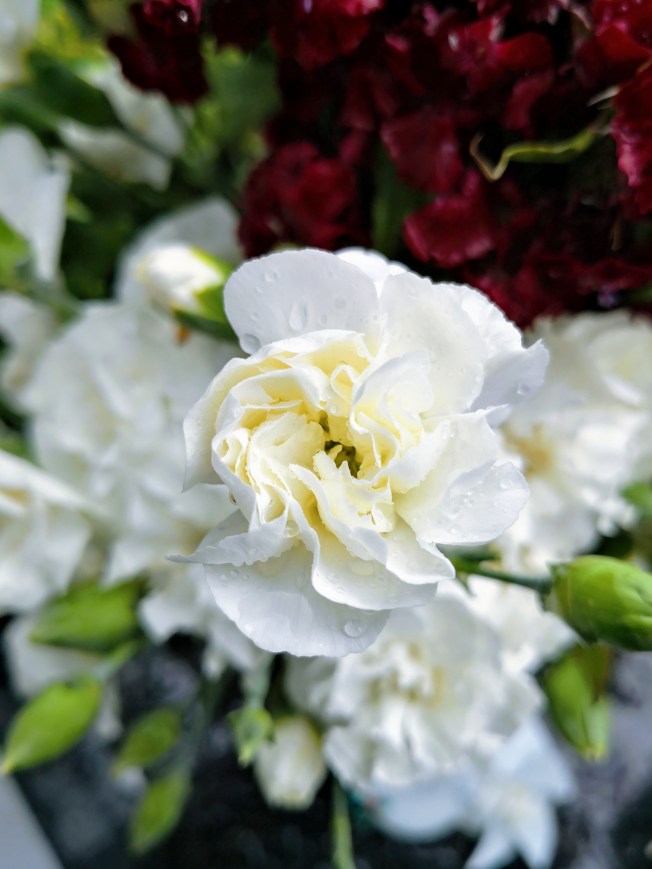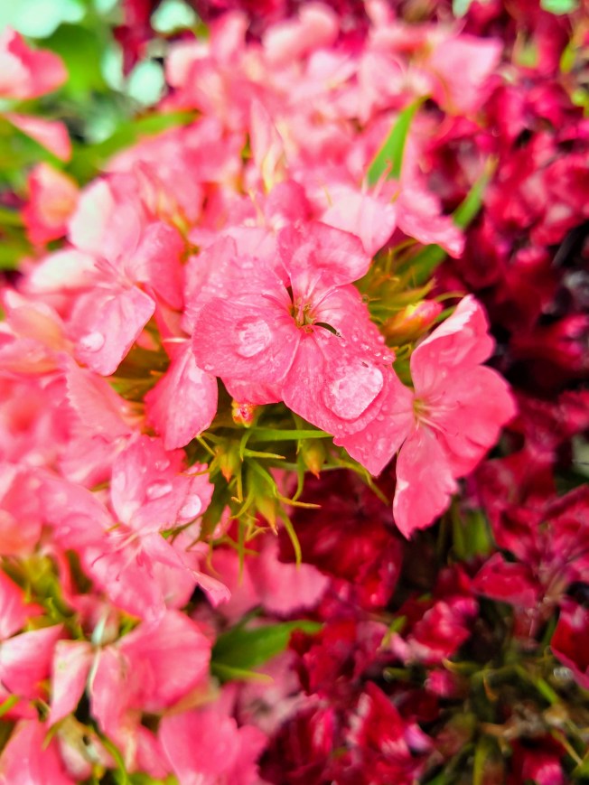 Hanging baskets along the Wharf