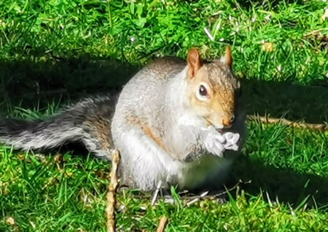 A nonchalant squirrel scrabbling for food