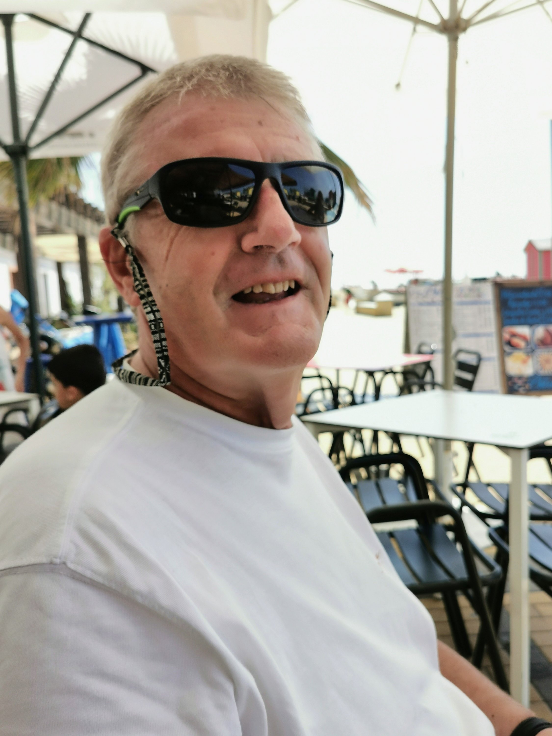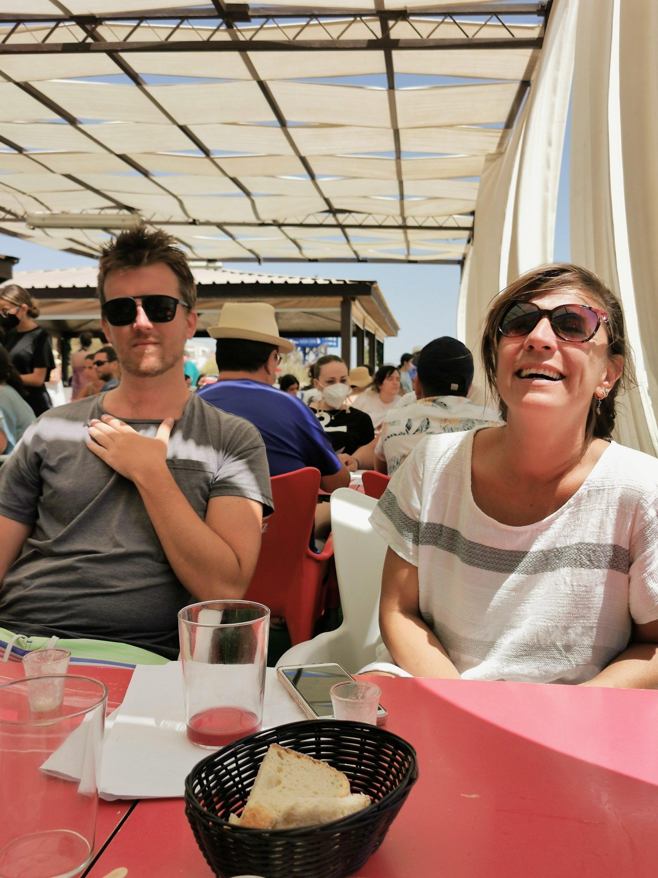 Beneath shady umbrellas