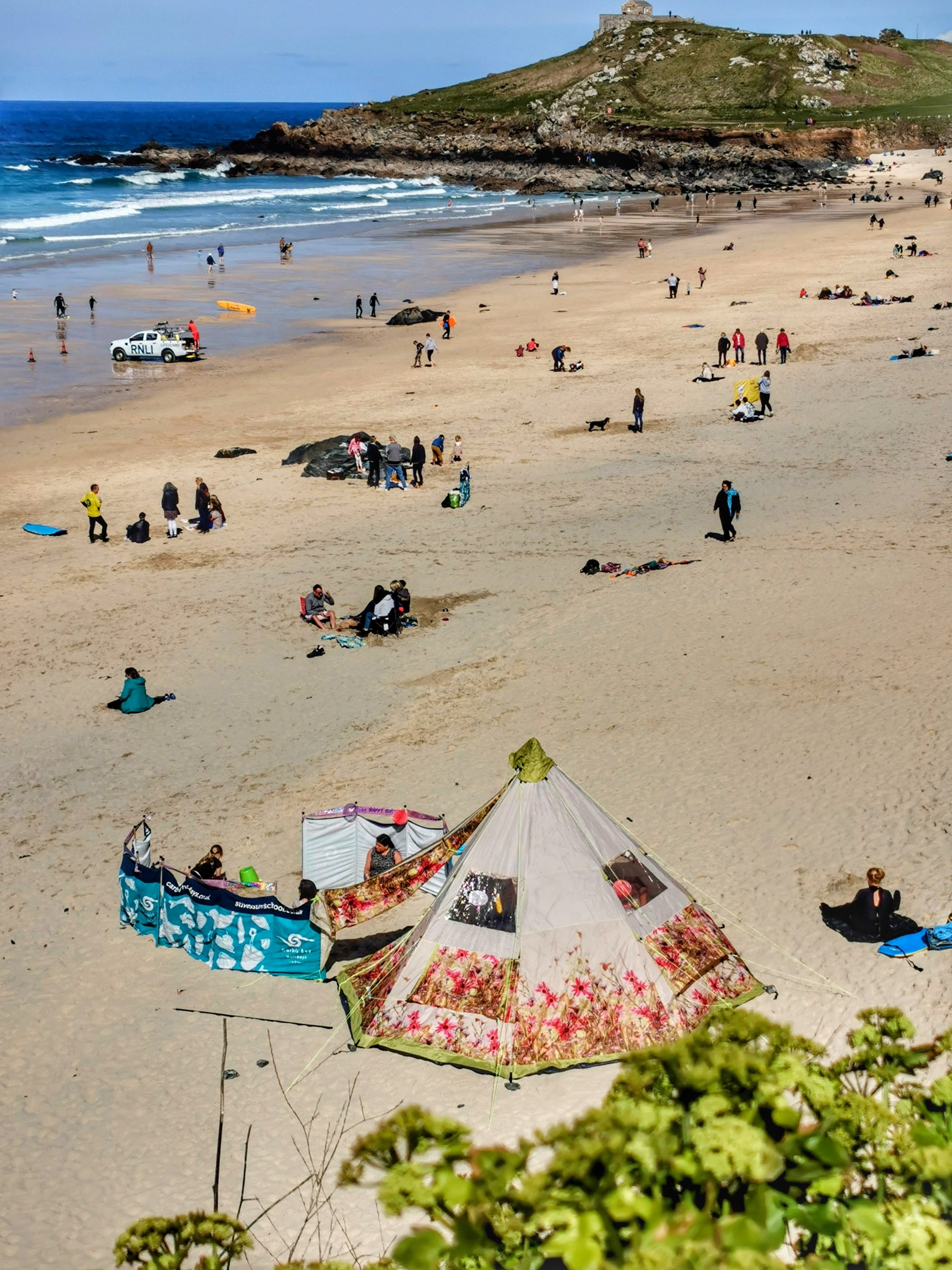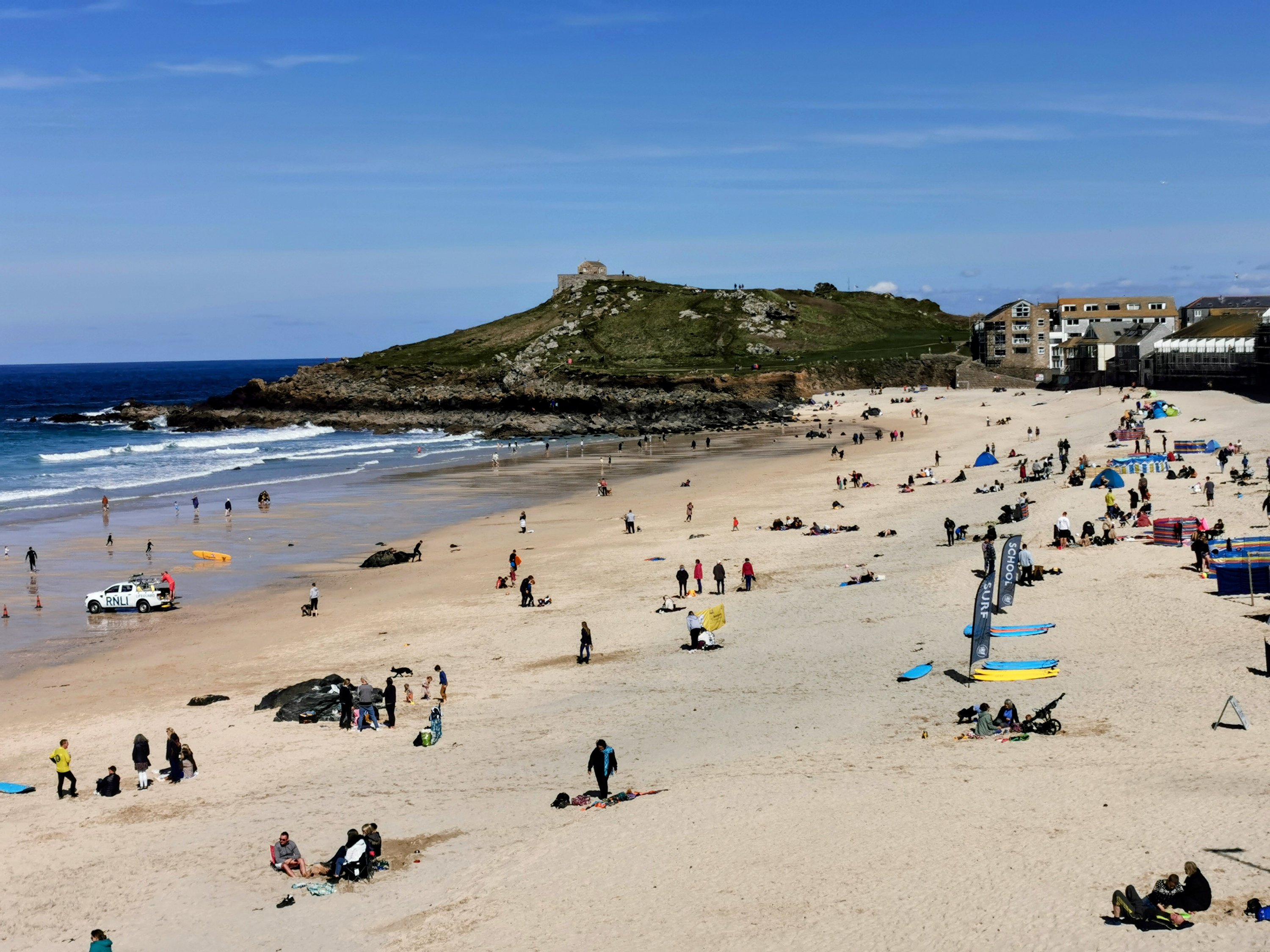 Park Avenue looking pretty this morning A busy Porthmeor Beach, complete with teepee! Holidaymakers have arrived Surf School ready for students Lifeguards on duty from today A busy harbour Saturday regatta Lovely blue skies, but a cold wind