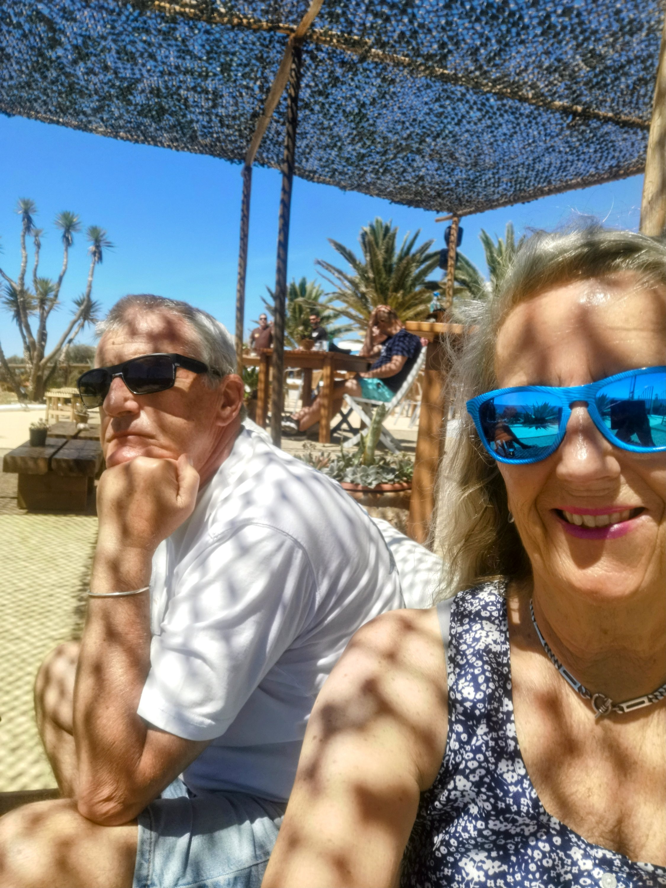 Sitting beneath palm trees