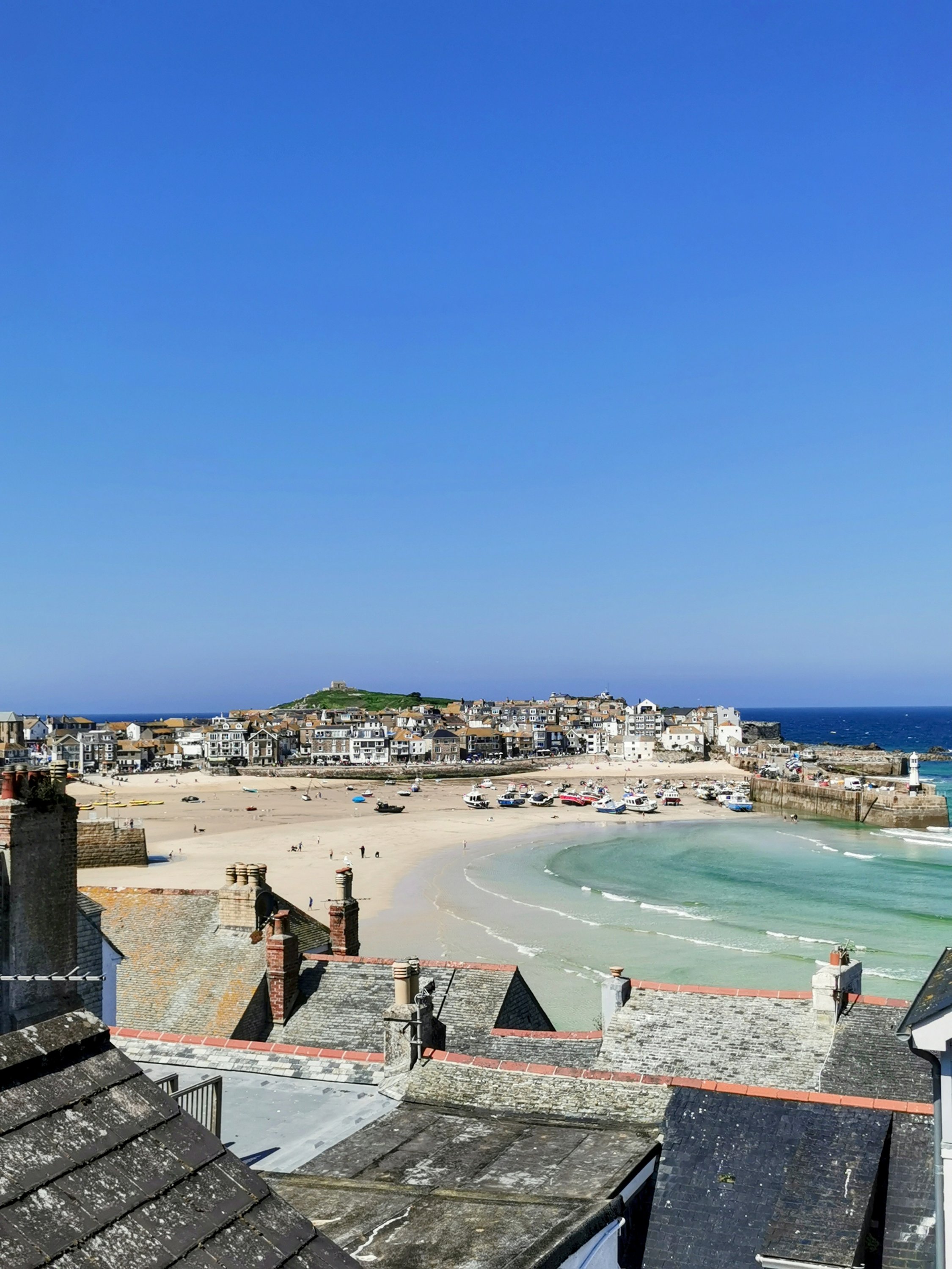 St Ives harbour this morning A different view of the Wharf The harbour through the rocks at Pedn Olva St Ives Food and Drink Festival Around the world food choices Porthminster Beach Lots of different food tents Pedn Olva Hotel and blue, blue sea The harbour from the Malakoff Over the rooftops