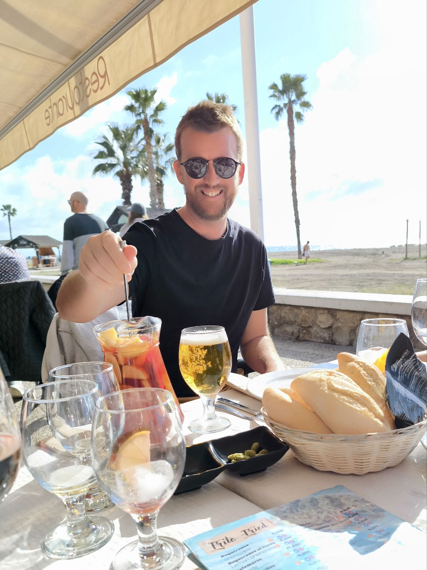 On Christmas Eve In the warm Spanish sun La Cala de Mijas Where joy has begun Our family group gathers Hearts all aglow For a long, leisurely lunch With love to bestow
