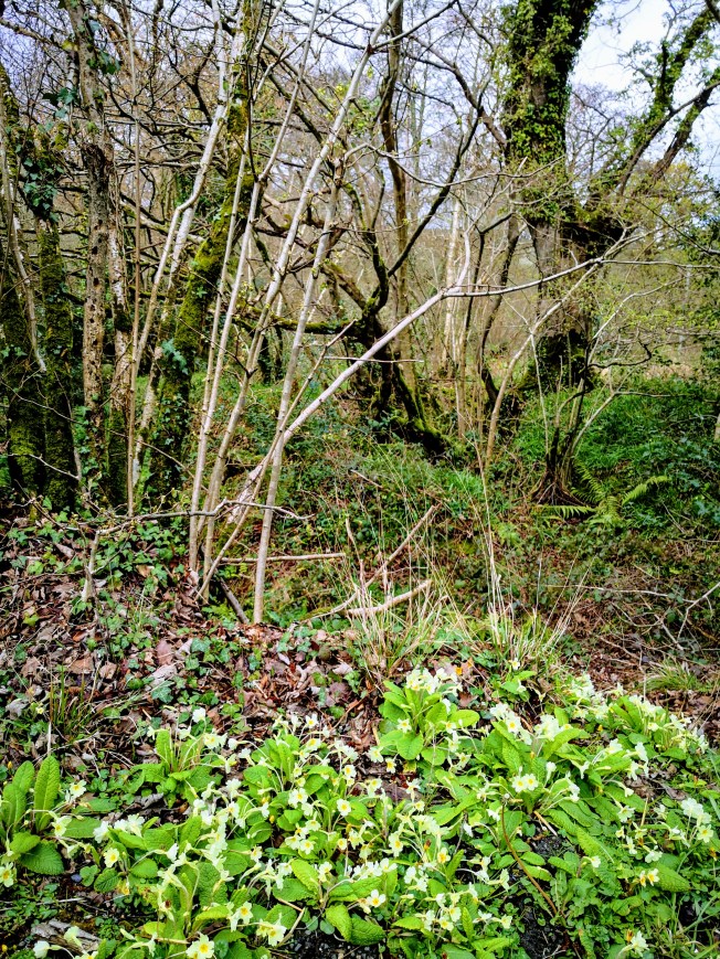 Primroses near the bank of the Tresillian River