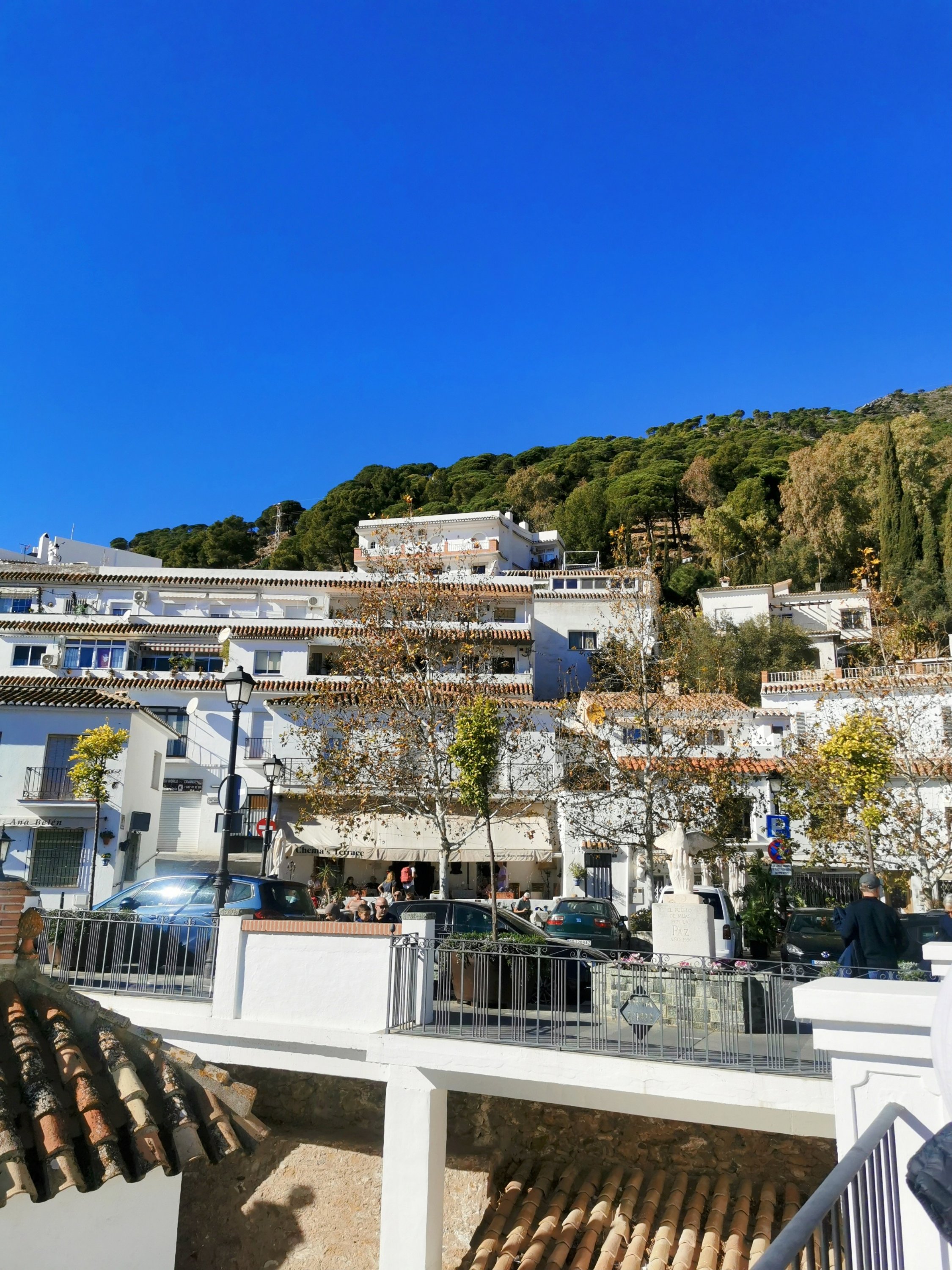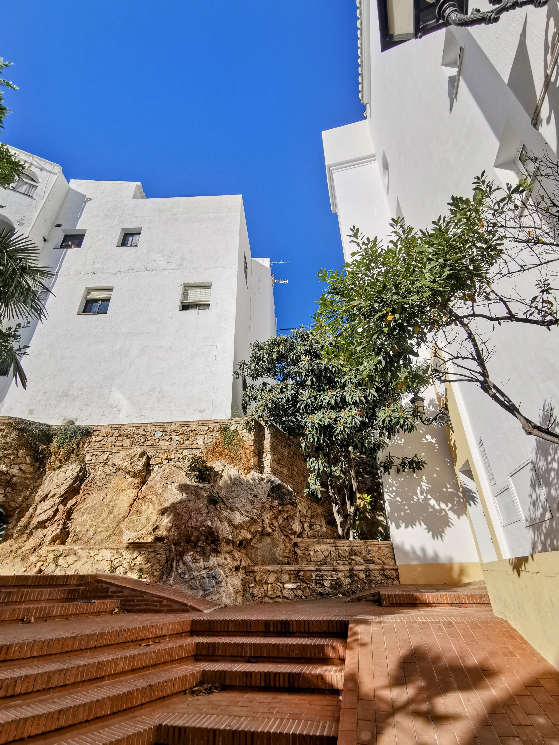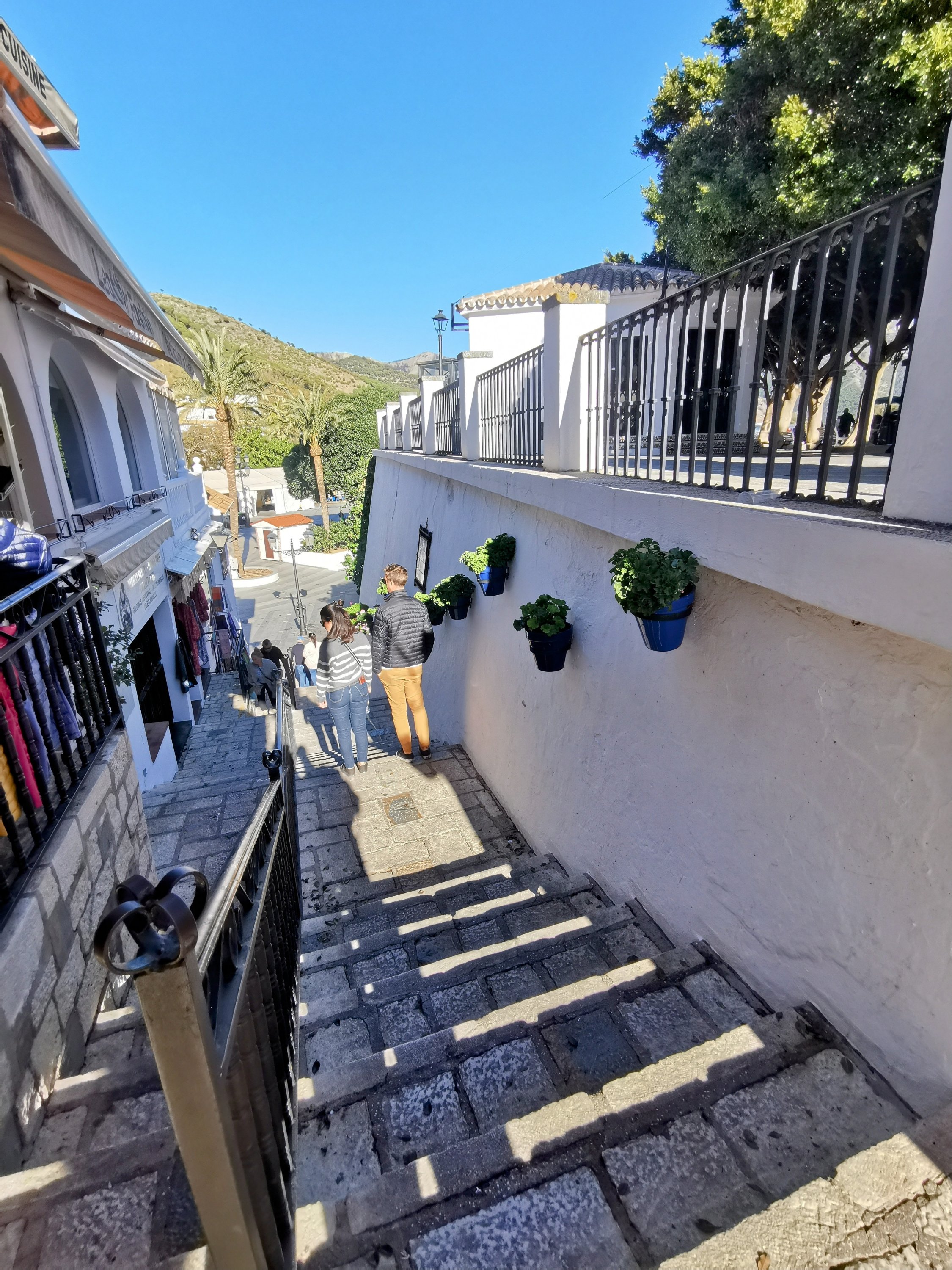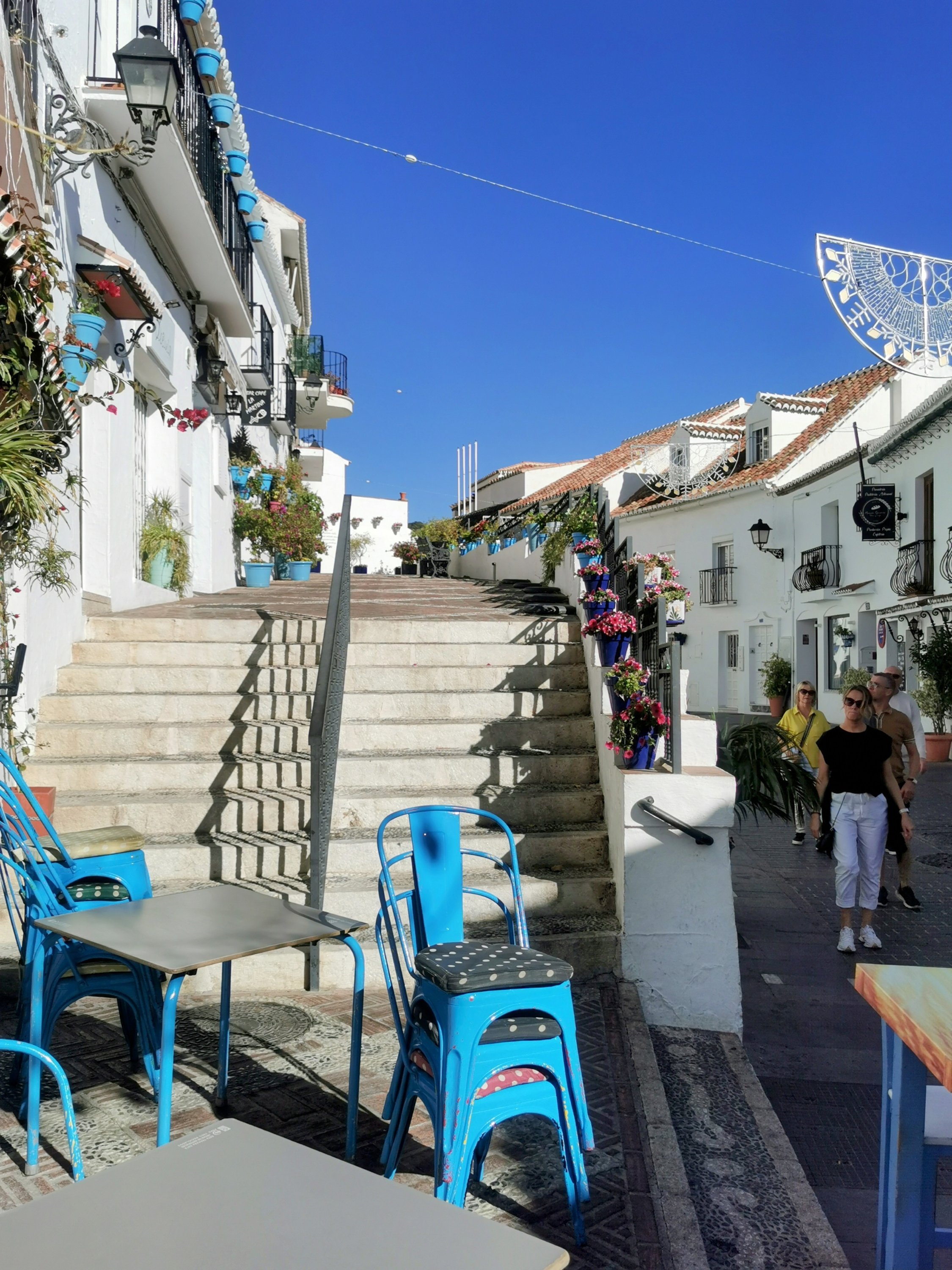 Hand crafted Christmas trees everywhere Colourful pots and flowers Setting up pavement seating Blue skies and white houses Horse and cart rides around the town Blue plant pots Looking down to the Mediterranean Steps, steps and more steps Iglesia de San SebastiánBlue skies, palm trees and Christmas decorations Only a few places open, but we found a great spot Pots and flowers decorate the white houses Lunchtime people watching Luke, beneath a gnarly tree Steps going down Perfecto An enclosed courtyard garden Luke and Talita going down the steps Plaza Virgen de la Peña
